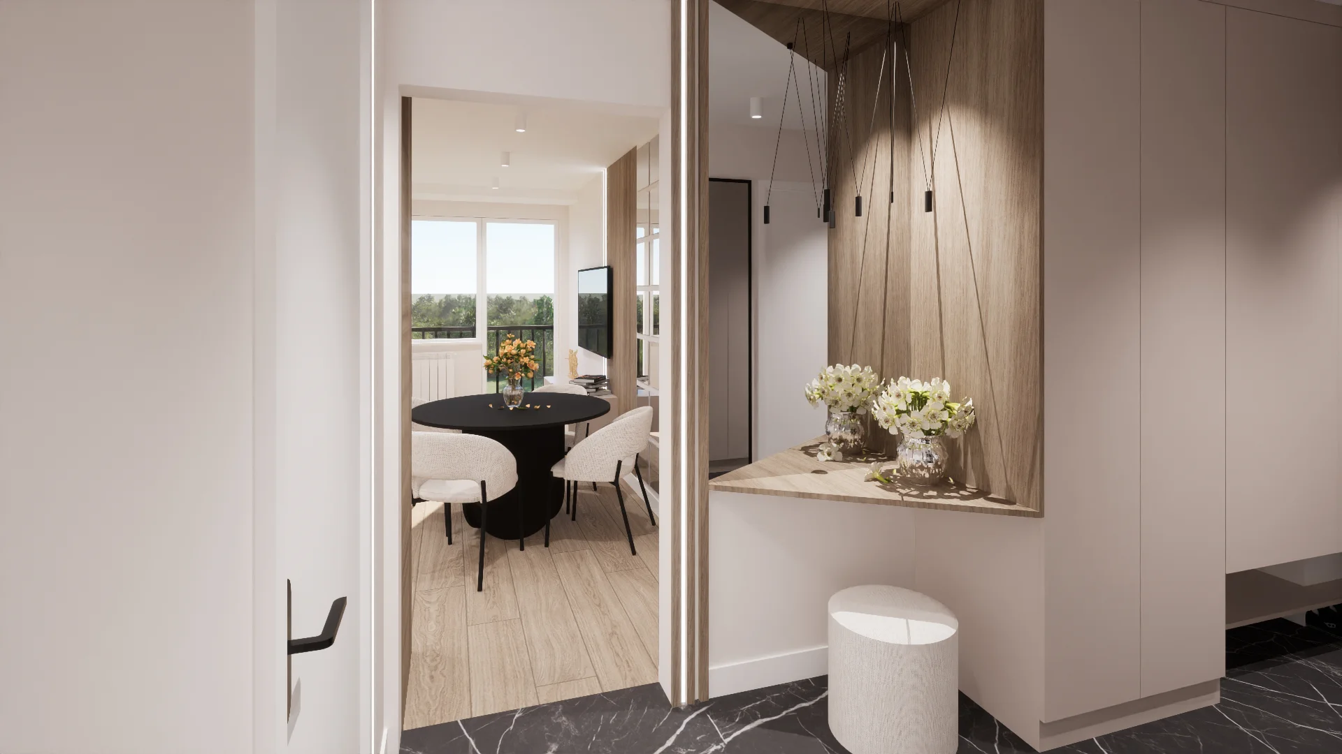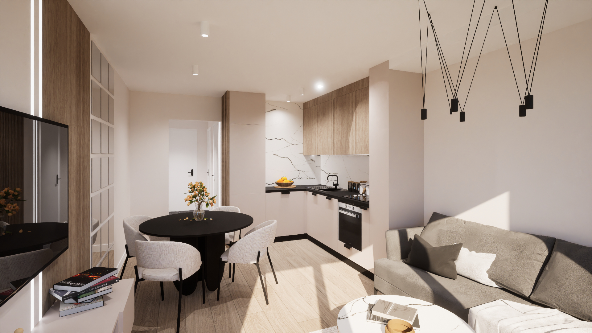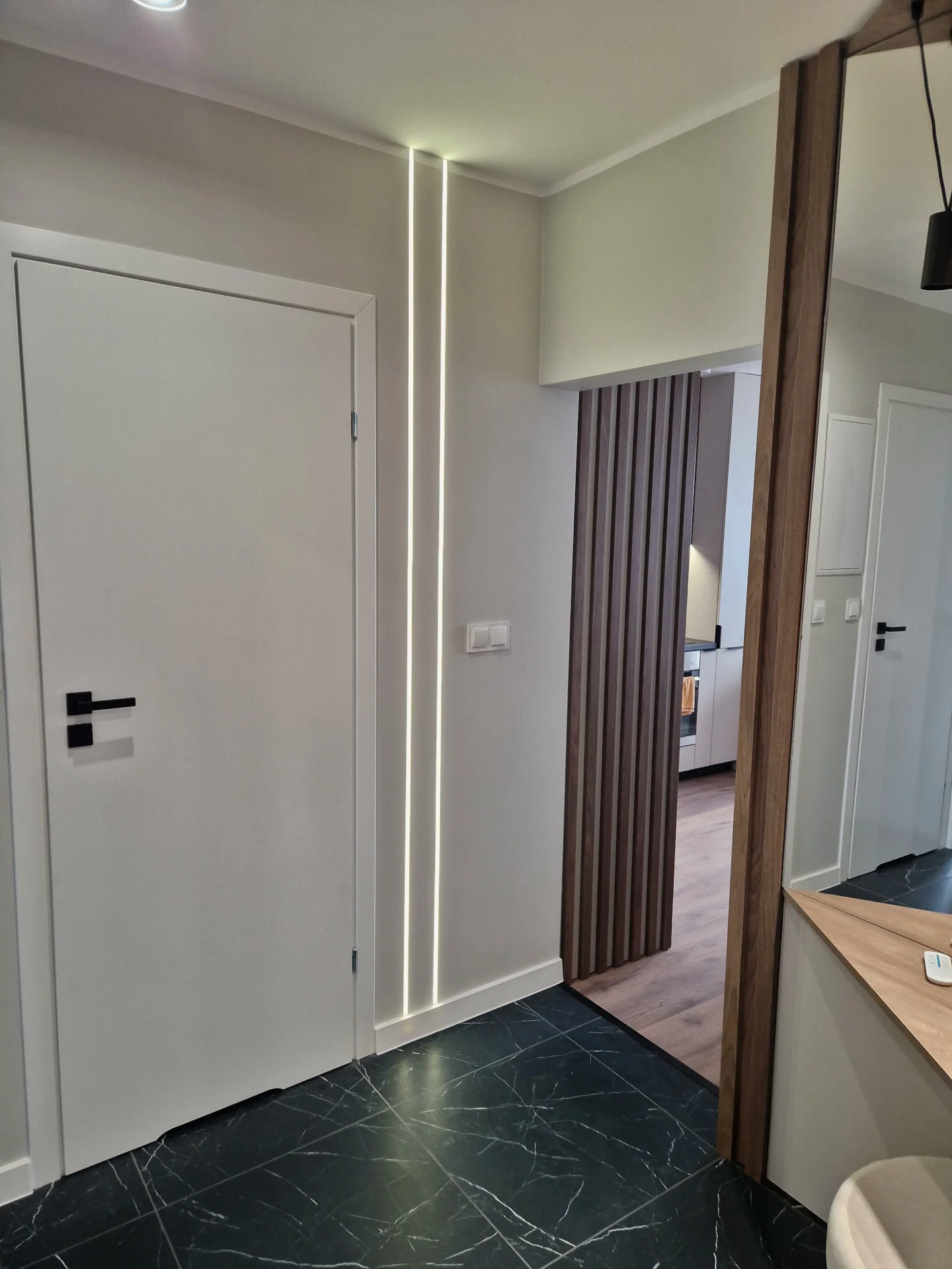 Projekt obejmował remont generalny 2-pokojowego mieszkania składającego się z salonu, sypialni, kuchni, łazienki oraz WC o łącznej powierzchni 51.1m2. Projekt ten wyróżnia się kompleksowym podejściem do remontu, w którym każdy element – od zmiany układu pomieszczeń po detale zabudowy – został starannie zaplanowany przez architekta wnętrz, aby stworzyć wygodne, nowoczesne i bezpieczne miejsce do życia..