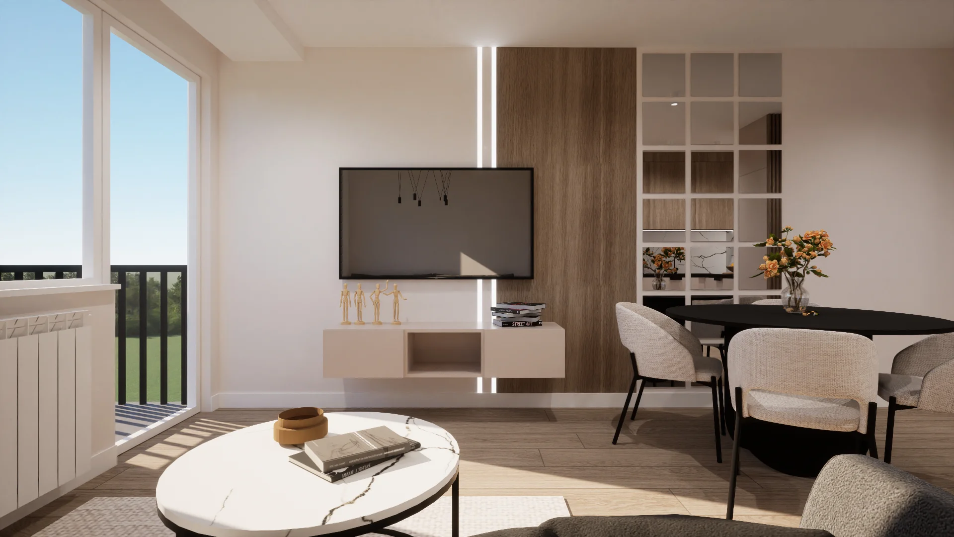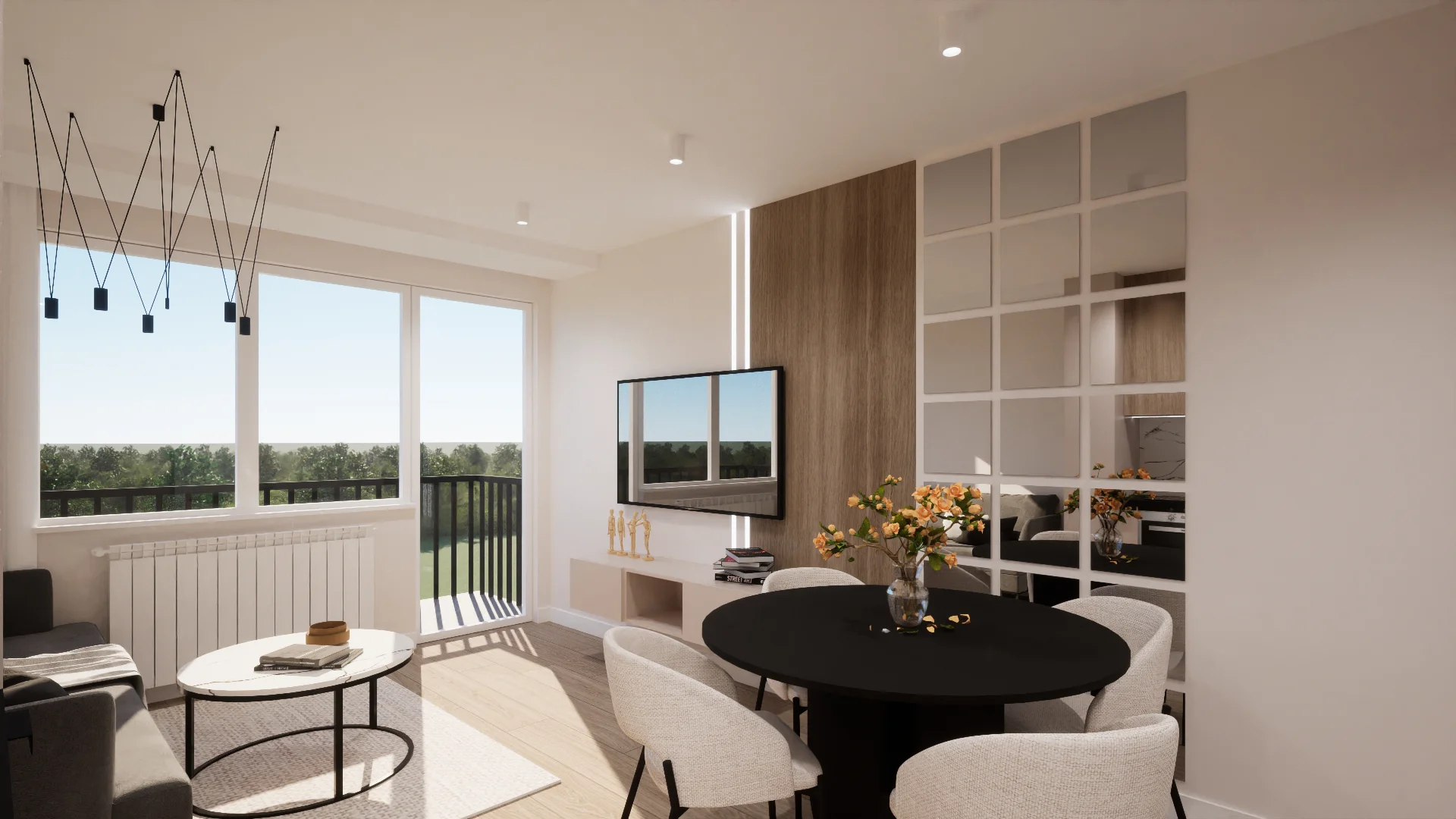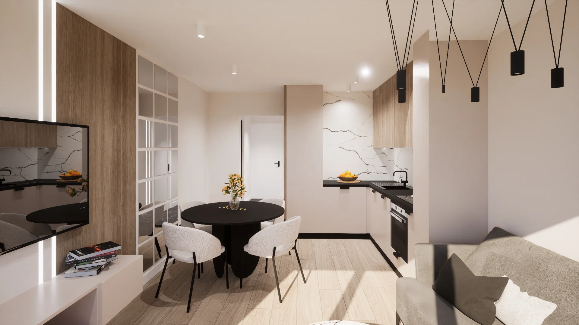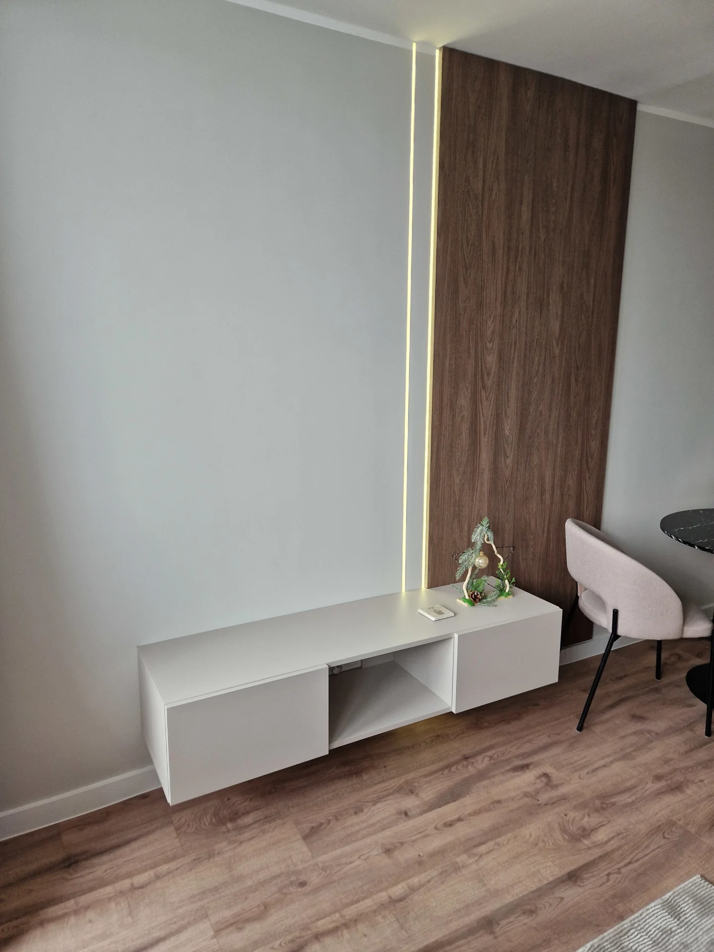 Projekt obejmował remont generalny 2-pokojowego mieszkania składającego się z salonu, sypialni, kuchni, łazienki oraz WC o łącznej powierzchni 51.1m2. Projekt ten wyróżnia się kompleksowym podejściem do remontu, w którym każdy element – od zmiany układu pomieszczeń po detale zabudowy – został starannie zaplanowany przez architekta wnętrz, aby stworzyć wygodne, nowoczesne i bezpieczne miejsce do życia..