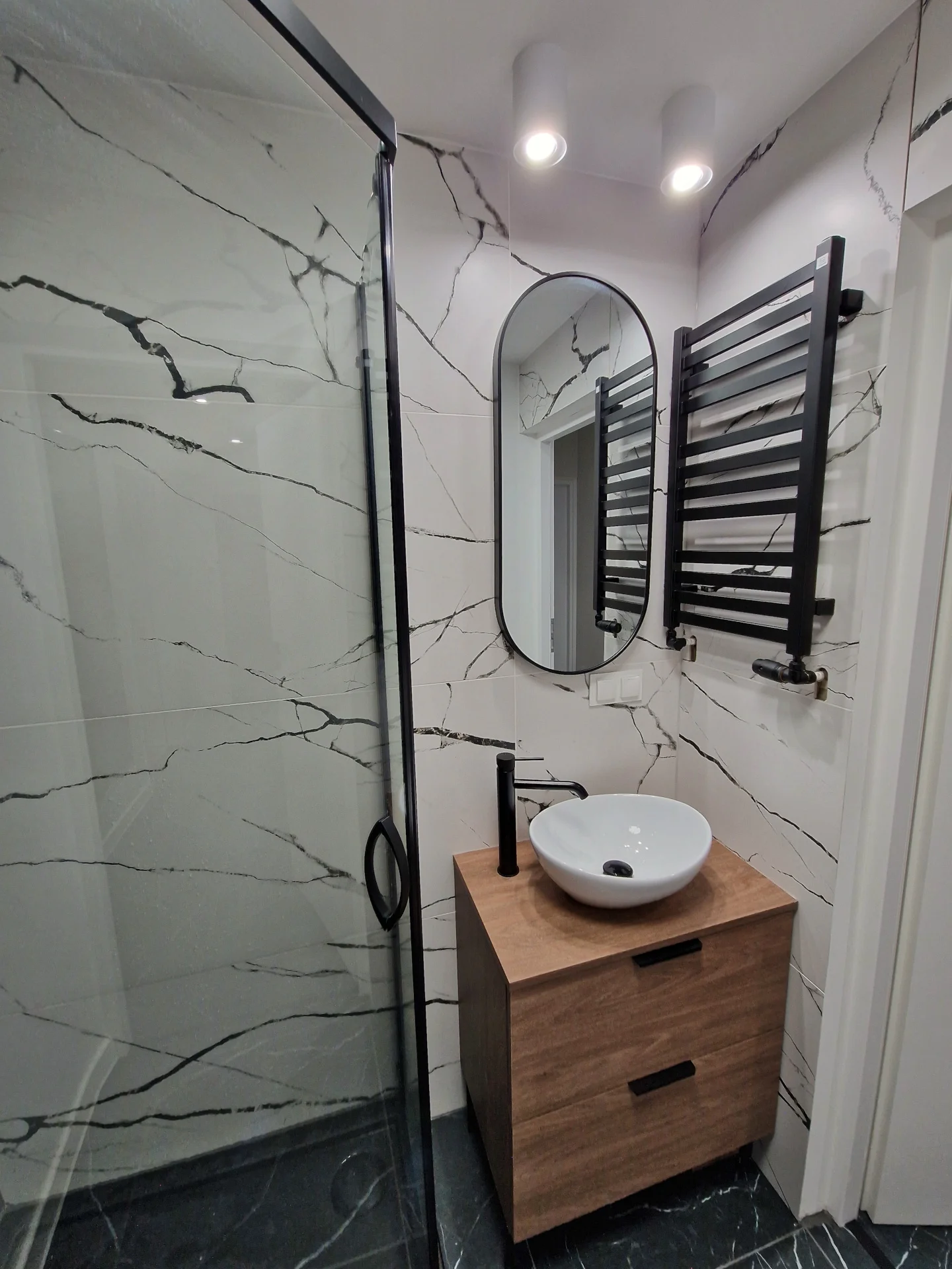 Całkowicie wymieniono instalacje elektryczną i wodno-kanalizacyjną, dostosowując je do współczesnych norm, co zapewnia komfort i bezpieczeństwo użytkowania.
